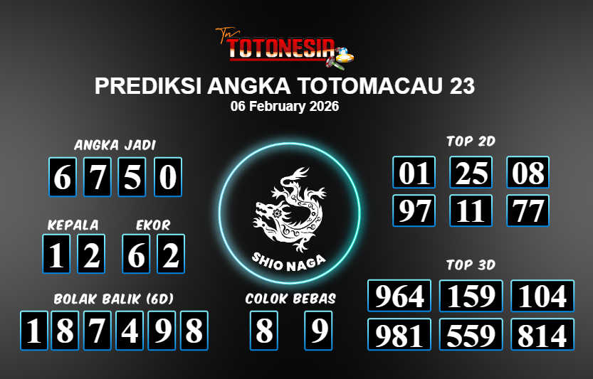 Toto Nesia : Bocoran Prediksi Togel NEW TOTOMACAU 23 Tanggal 06 FEBUARI 2026