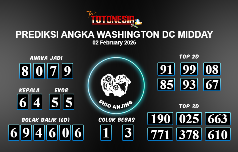 Prediksi WASHINGTON DC MIDDAY adalah perhitungan nomor togel unggulan dari agen suhu togel yang menyajikan angka prediksi paling akurat, sehingga memberikan banyak keuntungan saat bermain di pasar togel WASHINGTON DC MIDDAY . TotoNesia adalah prediksi dengan rasio kemenangan tertinggi di Indonesia. Sebagai penyedia togel yang dapat dipercaya, kami bertekad untuk memberikan ramalan togel yang handal dengan hadiah terbesarnya. Maka dari itu, jangan sampai terlewatkan prediksi bandar togel dengan hadiah terbanyak bet 100 dari pasar togel terbaik WASHINGTON DC MIDDAY Daftar sekarang juga di bandar.