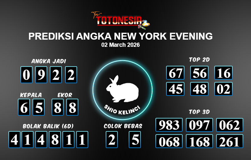 Toto Nesia : Bocoran Prediksi Togel NEW YORK EVENING Tanggal 02 MARET 2026