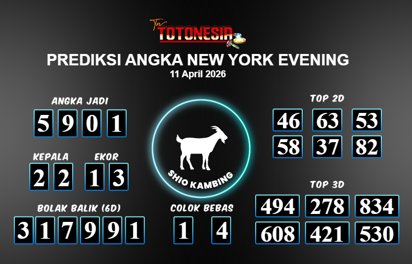 Toto Nesia : Bocoran Prediksi Togel NEW YORK EVENING Tanggal 11 APRIL 2026