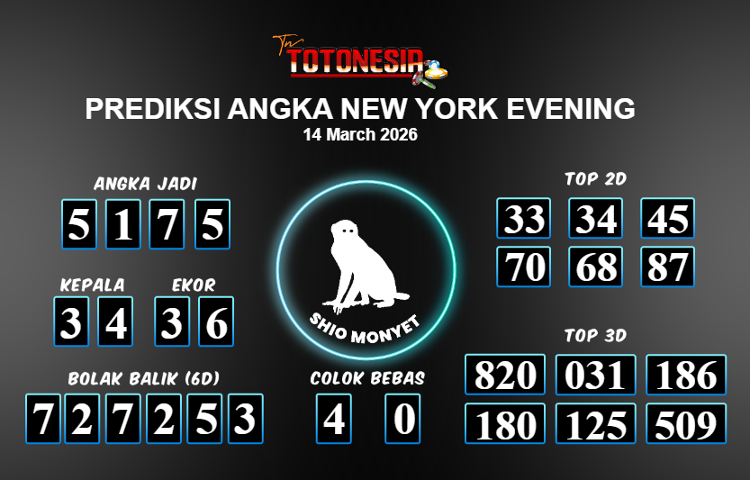 Toto Nesia : Bocoran Prediksi Togel NEW YORK EVENING Tanggal 14 MARET 2026