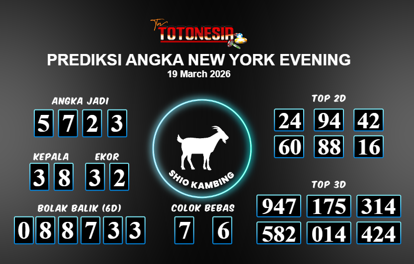 Toto Nesia : Bocoran Prediksi Togel NEW YORK EVENING Tanggal 19 MARET 2026