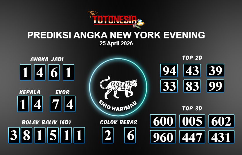 Toto Nesia : Bocoran Prediksi Togel NEW YORK EVENING Tanggal 25 APRIL 2026