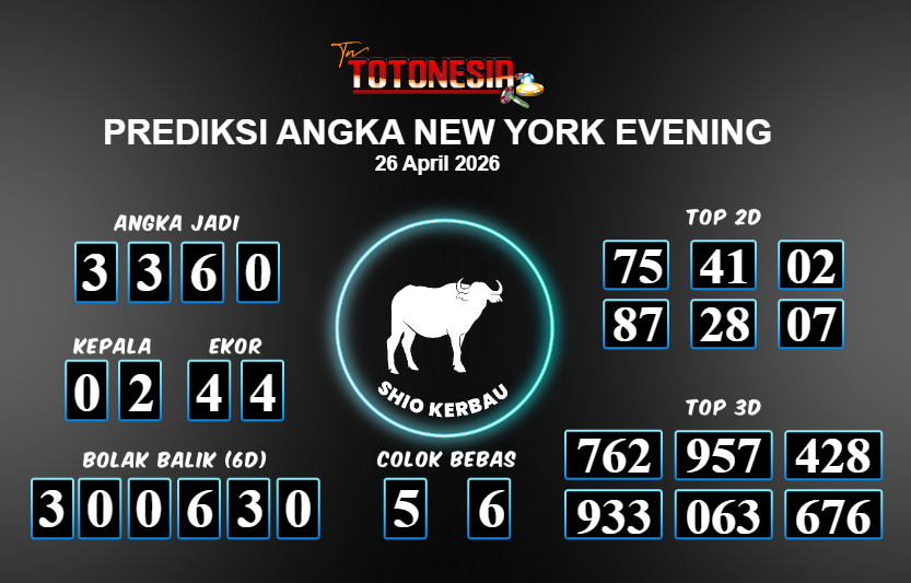 Toto Nesia : Bocoran Prediksi Togel NEW YORK EVENING Tanggal 26 APRIL 2026