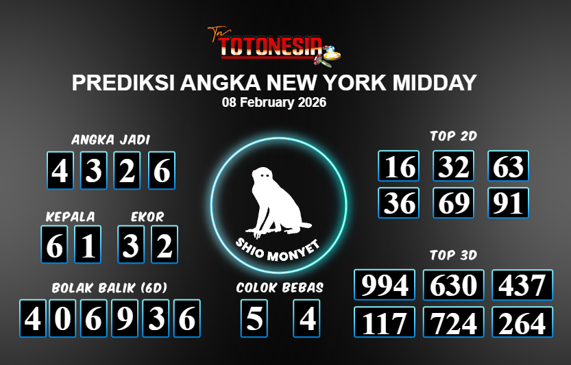 Toto Nesia : Bocoran Prediksi Togel NEW YORK MIDDAY Tanggal 08 FEBUARI 2026