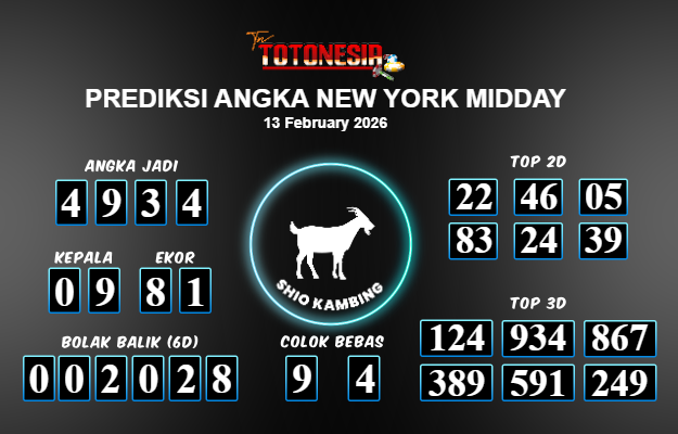 Toto Nesia : Bocoran Prediksi Togel NEW YORK MIDDAY Tanggal 13 FEBUARI 2026