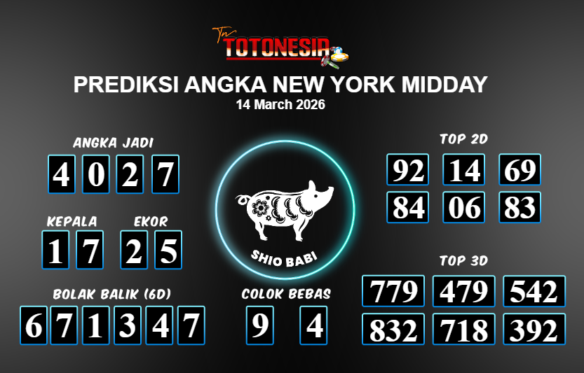 Toto Nesia : Bocoran Prediksi Togel NEW YORK MIDDAY Tanggal 14 MARET 2026