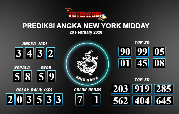 Toto Nesia : Bocoran Prediksi Togel NEW YORK MIDDAY Tanggal 20 FEBUARI 2026