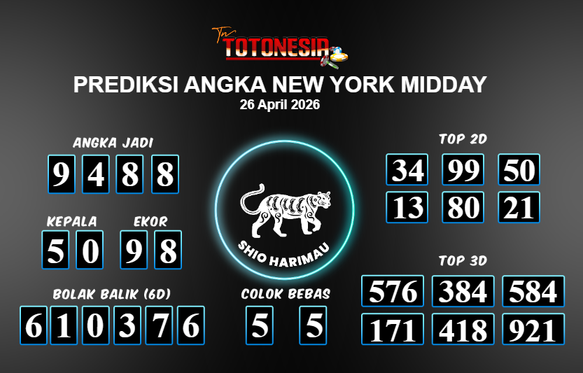 Toto Nesia : Bocoran Prediksi Togel NEW YORK MIDDAY Tanggal 26 APRIL 2026