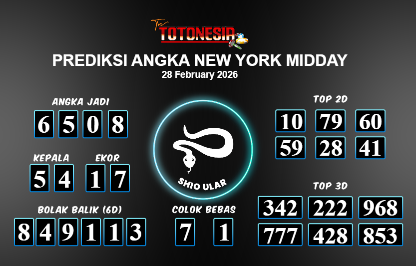 Toto Nesia : Bocoran Prediksi Togel NEW YORK MIDDAY Tanggal 28 FEBUARI 2026
