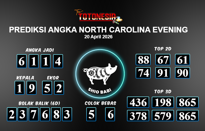 Toto Nesia : Bocoran Prediksi Togel NORTH CAROLINA EVENING Tanggal 20 APRIL 2026