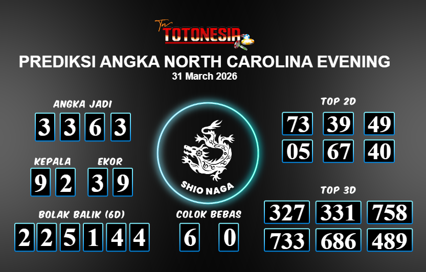 Toto Nesia : Bocoran Prediksi Togel NORTH CAROLINA EVENING Tanggal 31 MARET 2026