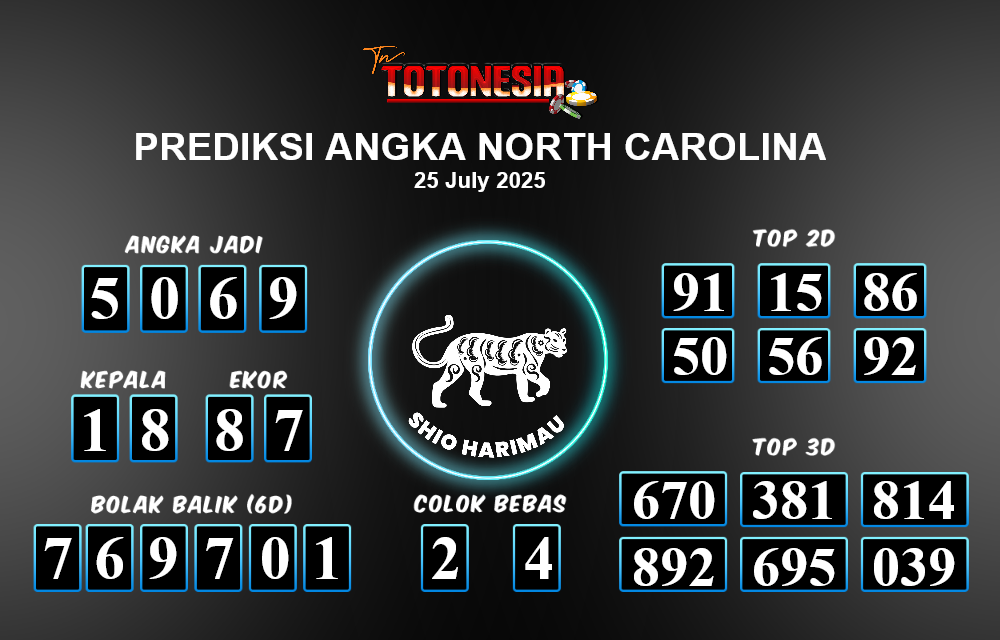 Toto Nesia : Bocoran Prediksi Togel NORTH CAROLINA Tanggal 25 July 2025