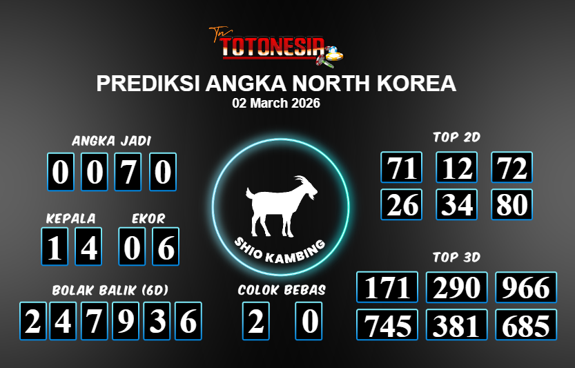Toto Nesia : Bocoran Prediksi Togel NORTH KOREA Tanggal 02 MARET 2026