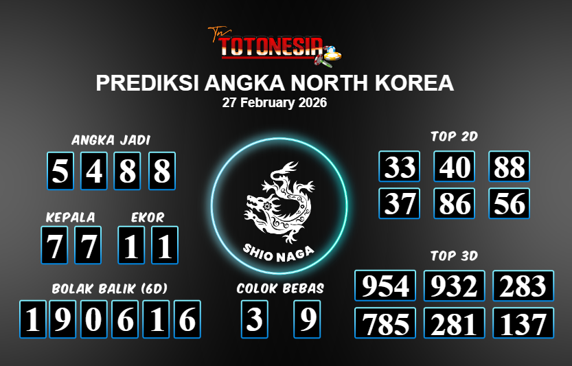Toto Nesia : Bocoran Prediksi Togel NORTH KOREA Tanggal 27 FEBUARI 2026