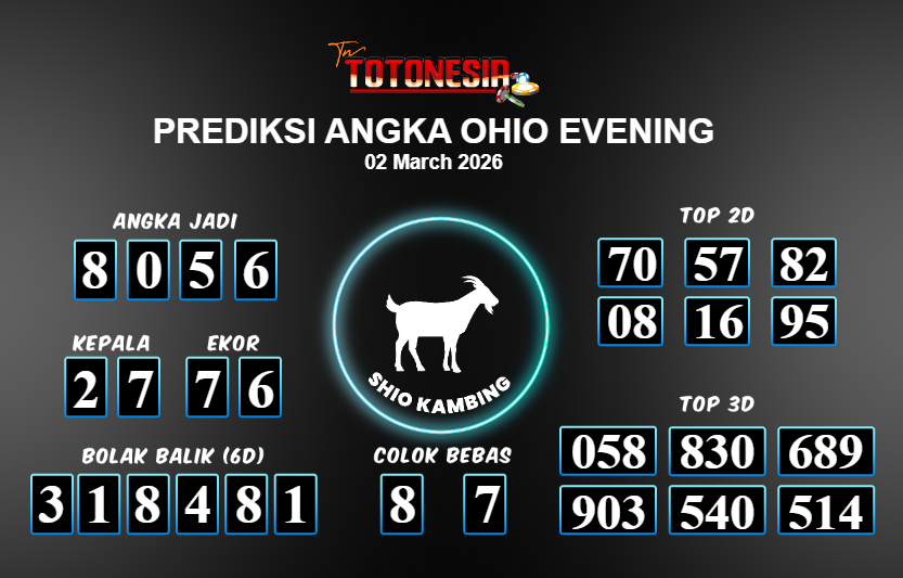 Toto Nesia : Bocoran Prediksi Togel OHIO EVENING Tanggal 02 MARET 2026