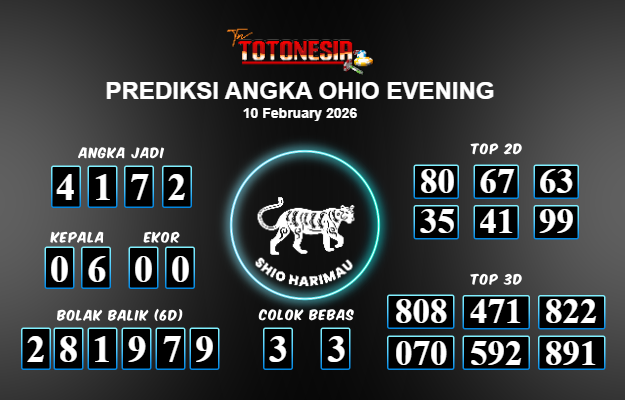 Toto Nesia : Bocoran Prediksi Togel OHIO EVENING Tanggal 10 FEBUARI 2026