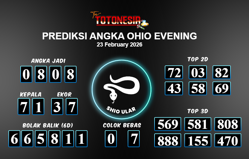 Toto Nesia : Bocoran Prediksi Togel OHIO EVENING Tanggal 23 FEBUARI 2026