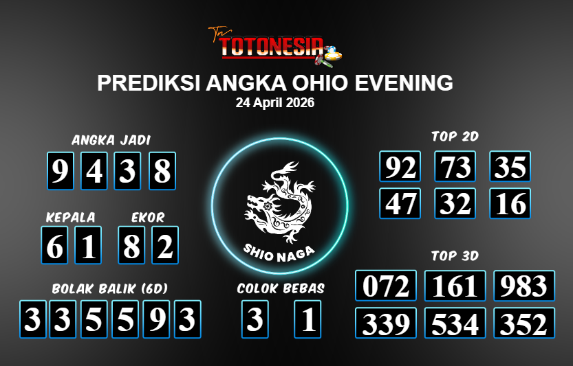 Toto Nesia : Bocoran Prediksi Togel OHIO EVENING Tanggal 24 APRIL 2026