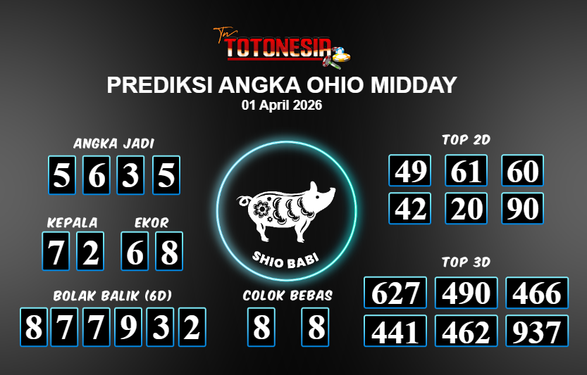 Prediksi OHIO MIDDAY adalah perhitungan nomor togel unggulan dari agen suhu togel yang menyajikan angka prediksi paling akurat, sehingga memberikan banyak keuntungan saat bermain di pasar togel OHIO MIDDAY . TotoNesia adalah prediksi dengan rasio kemenangan tertinggi di Indonesia. Sebagai penyedia togel yang dapat dipercaya, kami bertekad untuk memberikan ramalan togel yang handal dengan hadiah terbesarnya. Maka dari itu, jangan sampai terlewatkan prediksi bandar togel dengan hadiah terbanyak bet 100 dari pasar togel terbaik OHIO MIDDAY Daftar sekarang juga di bandar.