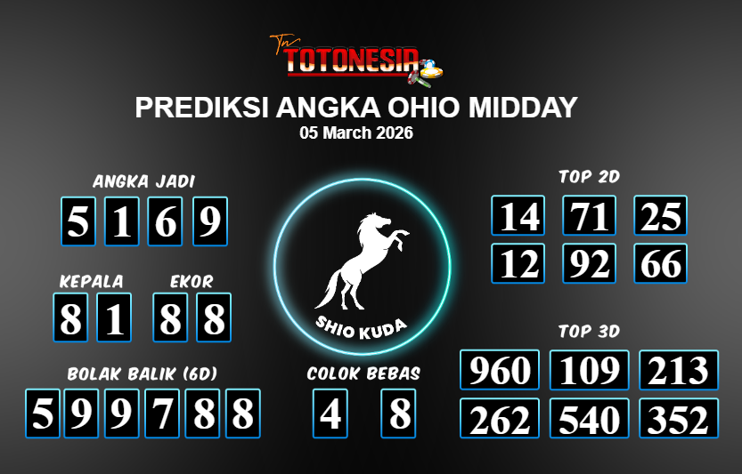 Prediksi OHIO MIDDAY adalah perhitungan nomor togel unggulan dari agen suhu togel yang menyajikan angka prediksi paling akurat, sehingga memberikan banyak keuntungan saat bermain di pasar togel OHIO MIDDAY . TotoNesia adalah prediksi dengan rasio kemenangan tertinggi di Indonesia. Sebagai penyedia togel yang dapat dipercaya, kami bertekad untuk memberikan ramalan togel yang handal dengan hadiah terbesarnya. Maka dari itu, jangan sampai terlewatkan prediksi bandar togel dengan hadiah terbanyak bet 100 dari pasar togel terbaik OHIO MIDDAY Daftar sekarang juga di bandar.