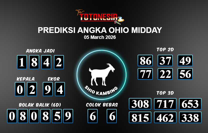 Toto Nesia : Bocoran Prediksi Togel OHIO MIDDAY Tanggal 05 MARET 2026