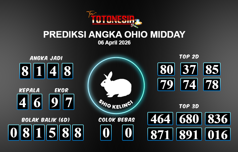 Prediksi OHIO MIDDAY adalah perhitungan nomor togel unggulan dari agen suhu togel yang menyajikan angka prediksi paling akurat, sehingga memberikan banyak keuntungan saat bermain di pasar togel OHIO MIDDAY . TotoNesia adalah prediksi dengan rasio kemenangan tertinggi di Indonesia. Sebagai penyedia togel yang dapat dipercaya, kami bertekad untuk memberikan ramalan togel yang handal dengan hadiah terbesarnya. Maka dari itu, jangan sampai terlewatkan prediksi bandar togel dengan hadiah terbanyak bet 100 dari pasar togel terbaik OHIO MIDDAY Daftar sekarang juga di bandar.