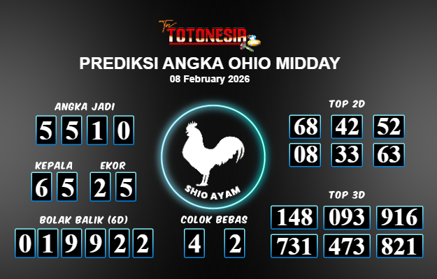 Prediksi OHIO MIDDAY adalah perhitungan nomor togel unggulan dari agen suhu togel yang menyajikan angka prediksi paling akurat, sehingga memberikan banyak keuntungan saat bermain di pasar togel OHIO MIDDAY. TotoNesia adalah prediksi dengan rasio kemenangan tertinggi di Indonesia. Sebagai penyedia togel yang dapat dipercaya, kami bertekad untuk memberikan ramalan togel yang handal dengan hadiah terbesarnya. Maka dari itu, jangan sampai terlewatkan prediksi bandar togel dengan hadiah terbanyak bet 100 dari pasar togel terbaik OHIO MIDDAY Daftar sekarang juga di bandar.