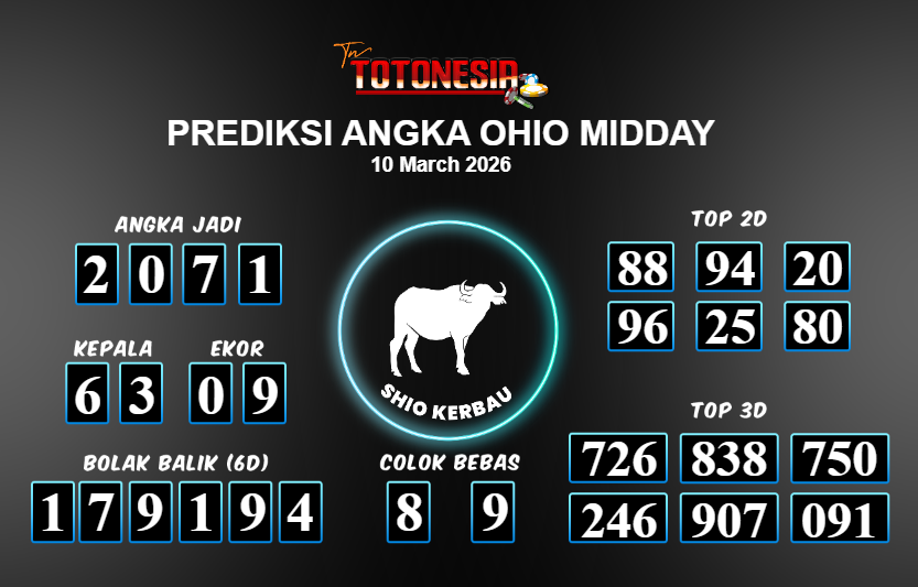 Prediksi OHIO MIDDAY adalah perhitungan nomor togel unggulan dari agen suhu togel yang menyajikan angka prediksi paling akurat, sehingga memberikan banyak keuntungan saat bermain di pasar togel OHIO MIDDAY . TotoNesia adalah prediksi dengan rasio kemenangan tertinggi di Indonesia. Sebagai penyedia togel yang dapat dipercaya, kami bertekad untuk memberikan ramalan togel yang handal dengan hadiah terbesarnya. Maka dari itu, jangan sampai terlewatkan prediksi bandar togel dengan hadiah terbanyak bet 100 dari pasar togel terbaik OHIO MIDDAY Daftar sekarang juga di bandar.