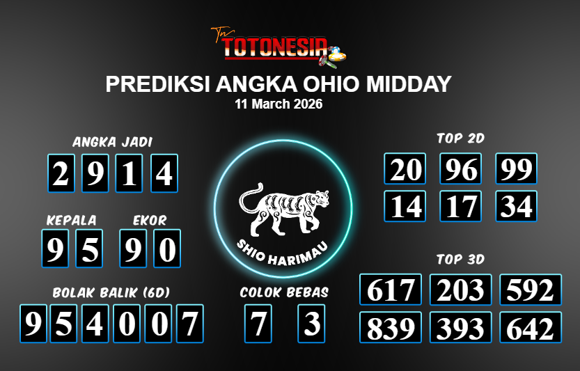 Prediksi OHIO MIDDAY adalah perhitungan nomor togel unggulan dari agen suhu togel yang menyajikan angka prediksi paling akurat, sehingga memberikan banyak keuntungan saat bermain di pasar togel OHIO MIDDAY . TotoNesia adalah prediksi dengan rasio kemenangan tertinggi di Indonesia. Sebagai penyedia togel yang dapat dipercaya, kami bertekad untuk memberikan ramalan togel yang handal dengan hadiah terbesarnya. Maka dari itu, jangan sampai terlewatkan prediksi bandar togel dengan hadiah terbanyak bet 100 dari pasar togel terbaik OHIO MIDDAY Daftar sekarang juga di bandar.
