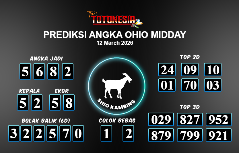 Toto Nesia : Bocoran Prediksi Togel OHIO MIDDAY Tanggal 12 MARET 2026