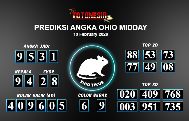 Toto Nesia : Bocoran Prediksi Togel OHIO MIDDAY Tanggal 13 FEBUARI 2026