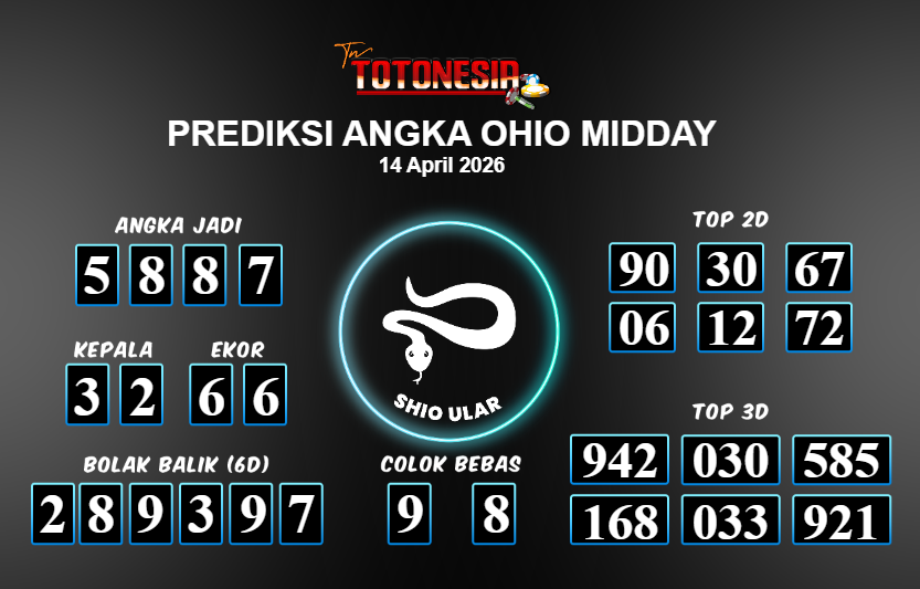 Prediksi OHIO MIDDAY adalah perhitungan nomor togel unggulan dari agen suhu togel yang menyajikan angka prediksi paling akurat, sehingga memberikan banyak keuntungan saat bermain di pasar togel OHIO MIDDAY . TotoNesia adalah prediksi dengan rasio kemenangan tertinggi di Indonesia. Sebagai penyedia togel yang dapat dipercaya, kami bertekad untuk memberikan ramalan togel yang handal dengan hadiah terbesarnya. Maka dari itu, jangan sampai terlewatkan prediksi bandar togel dengan hadiah terbanyak bet 100 dari pasar togel terbaik OHIO MIDDAY Daftar sekarang juga di bandar.