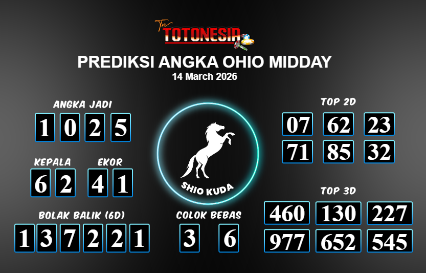 Toto Nesia : Bocoran Prediksi Togel OHIO MIDDAY Tanggal 14 MARET 2026