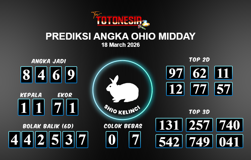 Prediksi OHIO MIDDAY adalah perhitungan nomor togel unggulan dari agen suhu togel yang menyajikan angka prediksi paling akurat, sehingga memberikan banyak keuntungan saat bermain di pasar togel OHIO MIDDAY . TotoNesia adalah prediksi dengan rasio kemenangan tertinggi di Indonesia. Sebagai penyedia togel yang dapat dipercaya, kami bertekad untuk memberikan ramalan togel yang handal dengan hadiah terbesarnya. Maka dari itu, jangan sampai terlewatkan prediksi bandar togel dengan hadiah terbanyak bet 100 dari pasar togel terbaik OHIO MIDDAY Daftar sekarang juga di bandar.
