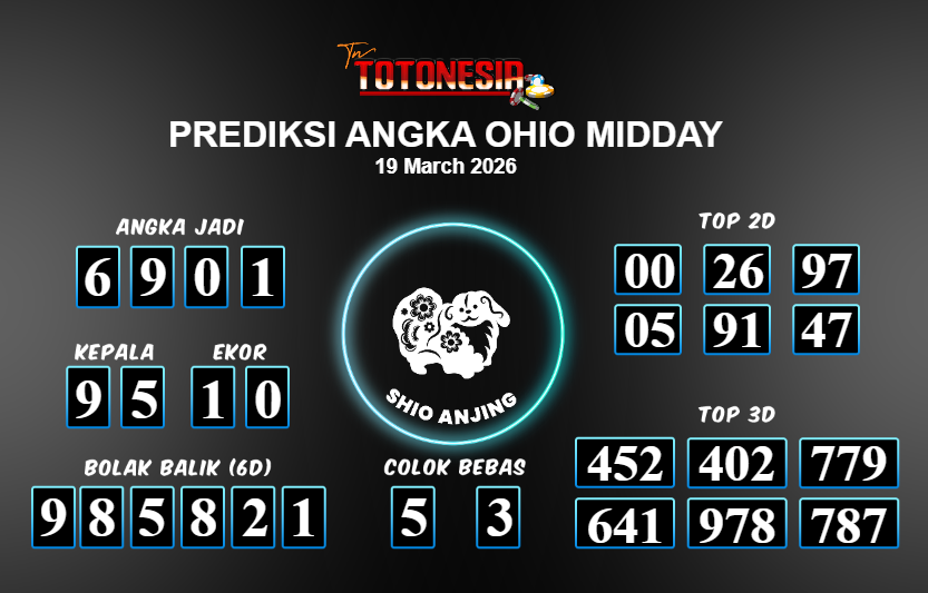 Prediksi OHIO MIDDAY adalah perhitungan nomor togel unggulan dari agen suhu togel yang menyajikan angka prediksi paling akurat, sehingga memberikan banyak keuntungan saat bermain di pasar togel OHIO MIDDAY . TotoNesia adalah prediksi dengan rasio kemenangan tertinggi di Indonesia. Sebagai penyedia togel yang dapat dipercaya, kami bertekad untuk memberikan ramalan togel yang handal dengan hadiah terbesarnya. Maka dari itu, jangan sampai terlewatkan prediksi bandar togel dengan hadiah terbanyak bet 100 dari pasar togel terbaik OHIO MIDDAY Daftar sekarang juga di bandar.