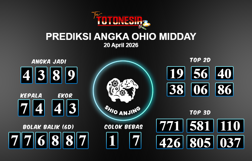 Toto Nesia : Bocoran Prediksi Togel OHIO MIDDAY Tanggal 20 APRIL 2026