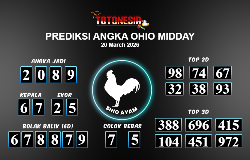 Prediksi OHIO MIDDAY adalah perhitungan nomor togel unggulan dari agen suhu togel yang menyajikan angka prediksi paling akurat, sehingga memberikan banyak keuntungan saat bermain di pasar togel OHIO MIDDAY . TotoNesia adalah prediksi dengan rasio kemenangan tertinggi di Indonesia. Sebagai penyedia togel yang dapat dipercaya, kami bertekad untuk memberikan ramalan togel yang handal dengan hadiah terbesarnya. Maka dari itu, jangan sampai terlewatkan prediksi bandar togel dengan hadiah terbanyak bet 100 dari pasar togel terbaik OHIO MIDDAY Daftar sekarang juga di bandar.