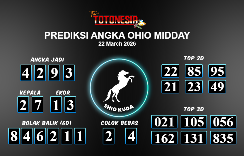 Prediksi OHIO MIDDAY adalah perhitungan nomor togel unggulan dari agen suhu togel yang menyajikan angka prediksi paling akurat, sehingga memberikan banyak keuntungan saat bermain di pasar togel OHIO MIDDAY . TotoNesia adalah prediksi dengan rasio kemenangan tertinggi di Indonesia. Sebagai penyedia togel yang dapat dipercaya, kami bertekad untuk memberikan ramalan togel yang handal dengan hadiah terbesarnya. Maka dari itu, jangan sampai terlewatkan prediksi bandar togel dengan hadiah terbanyak bet 100 dari pasar togel terbaik OHIO MIDDAY Daftar sekarang juga di bandar.
