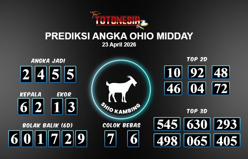 Prediksi OHIO MIDDAY adalah perhitungan nomor togel unggulan dari agen suhu togel yang menyajikan angka prediksi paling akurat, sehingga memberikan banyak keuntungan saat bermain di pasar togel OHIO MIDDAY . TotoNesia adalah prediksi dengan rasio kemenangan tertinggi di Indonesia. Sebagai penyedia togel yang dapat dipercaya, kami bertekad untuk memberikan ramalan togel yang handal dengan hadiah terbesarnya. Maka dari itu, jangan sampai terlewatkan prediksi bandar togel dengan hadiah terbanyak bet 100 dari pasar togel terbaik OHIO MIDDAY Daftar sekarang juga di bandar.