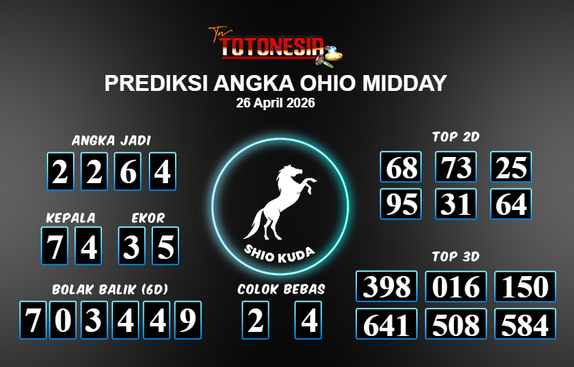 Prediksi OHIO MIDDAY adalah perhitungan nomor togel unggulan dari agen suhu togel yang menyajikan angka prediksi paling akurat, sehingga memberikan banyak keuntungan saat bermain di pasar togel OHIO MIDDAY . TotoNesia adalah prediksi dengan rasio kemenangan tertinggi di Indonesia. Sebagai penyedia togel yang dapat dipercaya, kami bertekad untuk memberikan ramalan togel yang handal dengan hadiah terbesarnya. Maka dari itu, jangan sampai terlewatkan prediksi bandar togel dengan hadiah terbanyak bet 100 dari pasar togel terbaik OHIO MIDDAY Daftar sekarang juga di bandar.