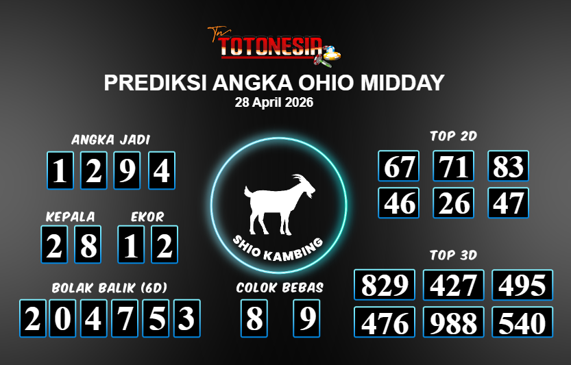 Toto Nesia : Bocoran Prediksi Togel OHIO MIDDAY Tanggal 28 APRIL 2026