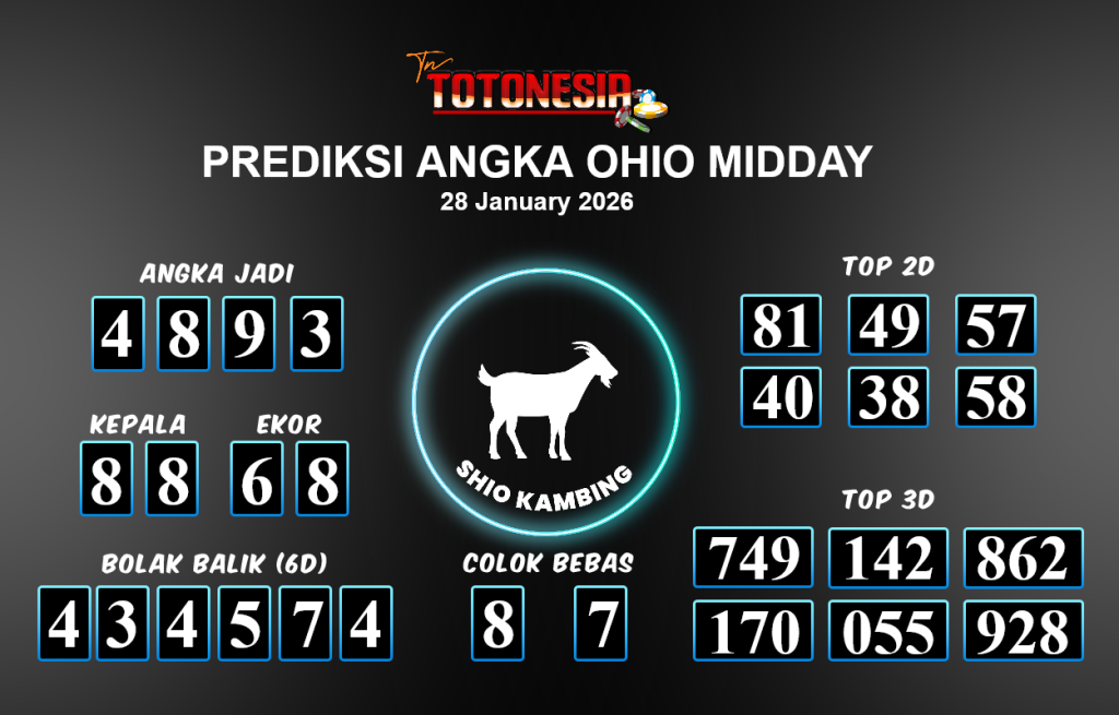 Prediksi OHIO MIDDAY adalah perhitungan nomor togel unggulan dari agen suhu togel yang menyajikan angka prediksi paling akurat, sehingga memberikan banyak keuntungan saat bermain di pasar togel OHIO MIDDAY . TotoNesia adalah prediksi dengan rasio kemenangan tertinggi di Indonesia. Sebagai penyedia togel yang dapat dipercaya, kami bertekad untuk memberikan ramalan togel yang handal dengan hadiah terbesarnya. Maka dari itu, jangan sampai terlewatkan prediksi bandar togel dengan hadiah terbanyak bet 100 dari pasar togel terbaik OHIO MIDDAY daftar sekarang juga di bandar.
