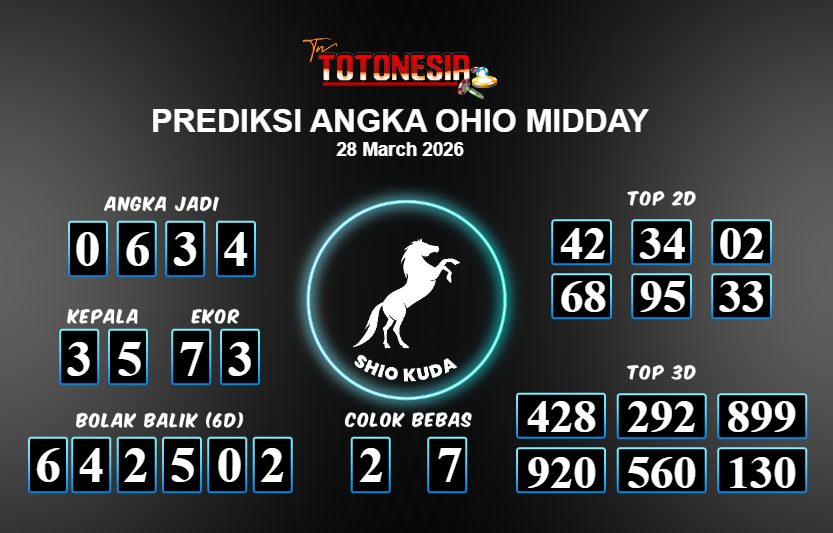 Toto Nesia : Bocoran Prediksi Togel OHIO MIDDAY Tanggal 28 MARET 2026