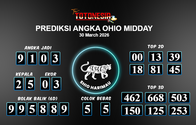 Prediksi OHIO MIDDAY adalah perhitungan nomor togel unggulan dari agen suhu togel yang menyajikan angka prediksi paling akurat, sehingga memberikan banyak keuntungan saat bermain di pasar togel OHIO MIDDAY . TotoNesia adalah prediksi dengan rasio kemenangan tertinggi di Indonesia. Sebagai penyedia togel yang dapat dipercaya, kami bertekad untuk memberikan ramalan togel yang handal dengan hadiah terbesarnya. Maka dari itu, jangan sampai terlewatkan prediksi bandar togel dengan hadiah terbanyak bet 100 dari pasar togel terbaik OHIO MIDDAY Daftar sekarang juga di bandar.