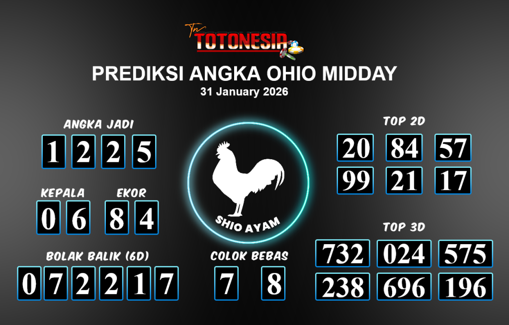 Prediksi OHIO MIDDAY adalah perhitungan nomor togel unggulan dari agen suhu togel yang menyajikan angka prediksi paling akurat, sehingga memberikan banyak keuntungan saat bermain di pasar togel OHIO MIDDAY. TotoNesia adalah prediksi dengan rasio kemenangan tertinggi di Indonesia. Sebagai penyedia togel yang dapat dipercaya, kami bertekad untuk memberikan ramalan togel yang handal dengan hadiah terbesarnya. Maka dari itu, jangan sampai terlewatkan prediksi bandar togel dengan hadiah terbanyak bet 100 dari pasar togel terbaik OHIO MIDDAY Daftar sekarang juga di bandar.