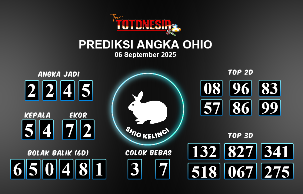 Toto Nesia : Bocoran Prediksi Togel OHIO Tanggal 06 SEPTEMBER 2025