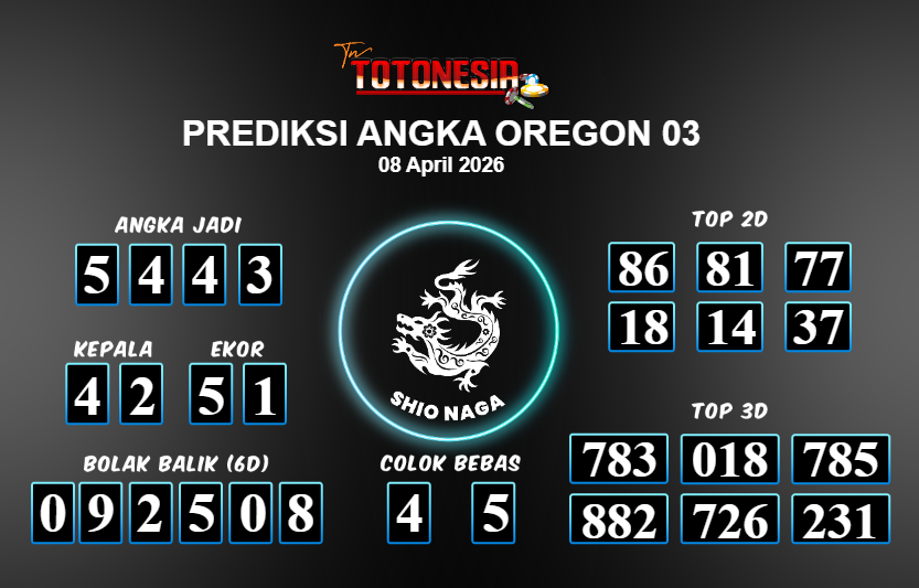 Prediksi OREGON 03 adalah perhitungan nomor togel unggulan dari agen suhu togel yang menyajikan angka prediksi paling akurat, sehingga memberikan banyak keuntungan saat bermain di pasar togel OREGON 03 . TotoNesia adalah prediksi dengan rasio kemenangan tertinggi di Indonesia. Sebagai penyedia togel yang dapat dipercaya, kami bertekad untuk memberikan ramalan togel yang handal dengan hadiah terbesarnya. Maka dari itu, jangan sampai terlewatkan prediksi bandar togel dengan hadiah terbanyak bet 100 dari pasar togel terbaik OREGON 03 Daftar sekarang juga di bandar.