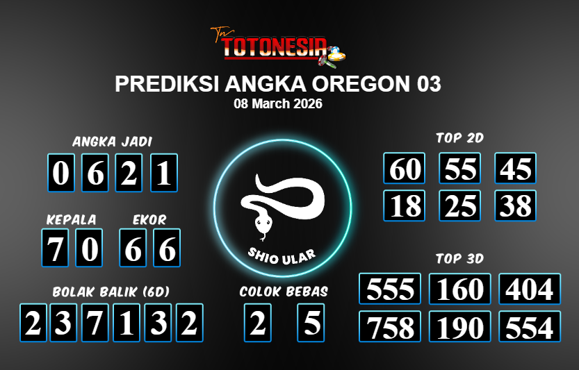 Prediksi OREGON 03 adalah perhitungan nomor togel unggulan dari agen suhu togel yang menyajikan angka prediksi paling akurat, sehingga memberikan banyak keuntungan saat bermain di pasar togel OREGON 03 . TotoNesia adalah prediksi dengan rasio kemenangan tertinggi di Indonesia. Sebagai penyedia togel yang dapat dipercaya, kami bertekad untuk memberikan ramalan togel yang handal dengan hadiah terbesarnya. Maka dari itu, jangan sampai terlewatkan prediksi bandar togel dengan hadiah terbanyak bet 100 dari pasar togel terbaik OREGON 03 Daftar sekarang juga di bandar.