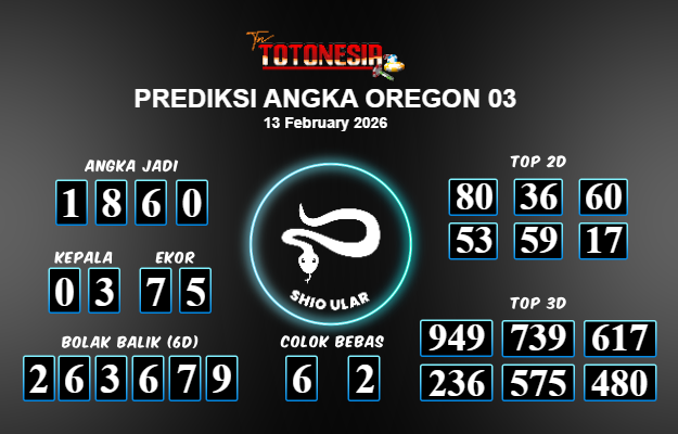 Toto Nesia : Bocoran Prediksi Togel OREGON 03 Tanggal 13 FEBUARI 2026